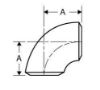 Elbow type: weld on short radius 90 degree, Material: 316 Stainless Steel per ASTM A403, Schedule: 10S, Dimensions conform to ASME B16.9, Nominal Pipe Size: 8 inch, Outside Diameter: 8.63 inch, Inside Diameter: 8.33 inch, Wall Thickness: 0.148 inch, Center to Center A: 8 inch, Approx Weight: 9.9 LBS